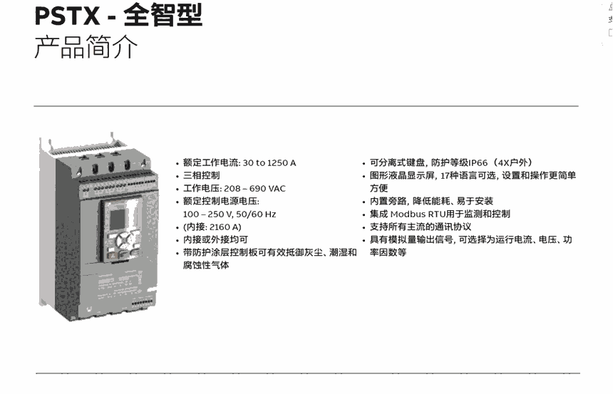 库存现货供应ABB全智型软启动器PSTX72-600-70